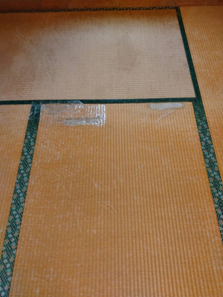 今回の施工では、破れてしまった部分を補修しつつ、畳全体を表替え。